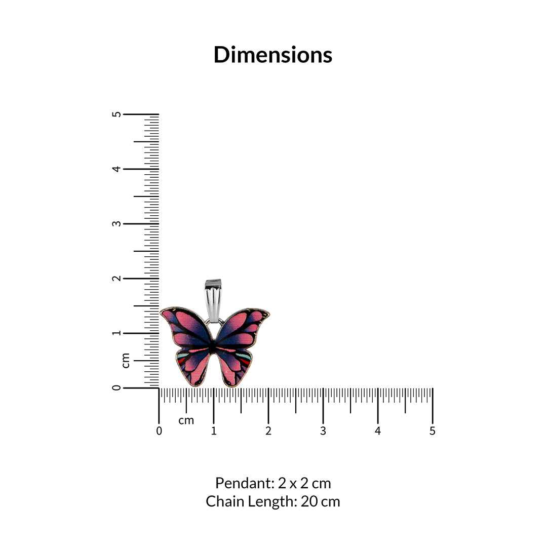 Adorn yourself with the whimsical charm of this exquisite butterfly pendant necklace. Featuring a beautifully crafted butterfly charm with vibrant hues of pink and blue, this piece is suspended from a delicate yet durable silver-tone chain. The intricate detailing on the butterfly wings adds a touch of artistic elegance, making it a perfect accessory for everyday wear or a thoughtful gift for nature lovers. Its lightweight design ensures comfortable wear, while the striking colors effortlessly complement various outfits.