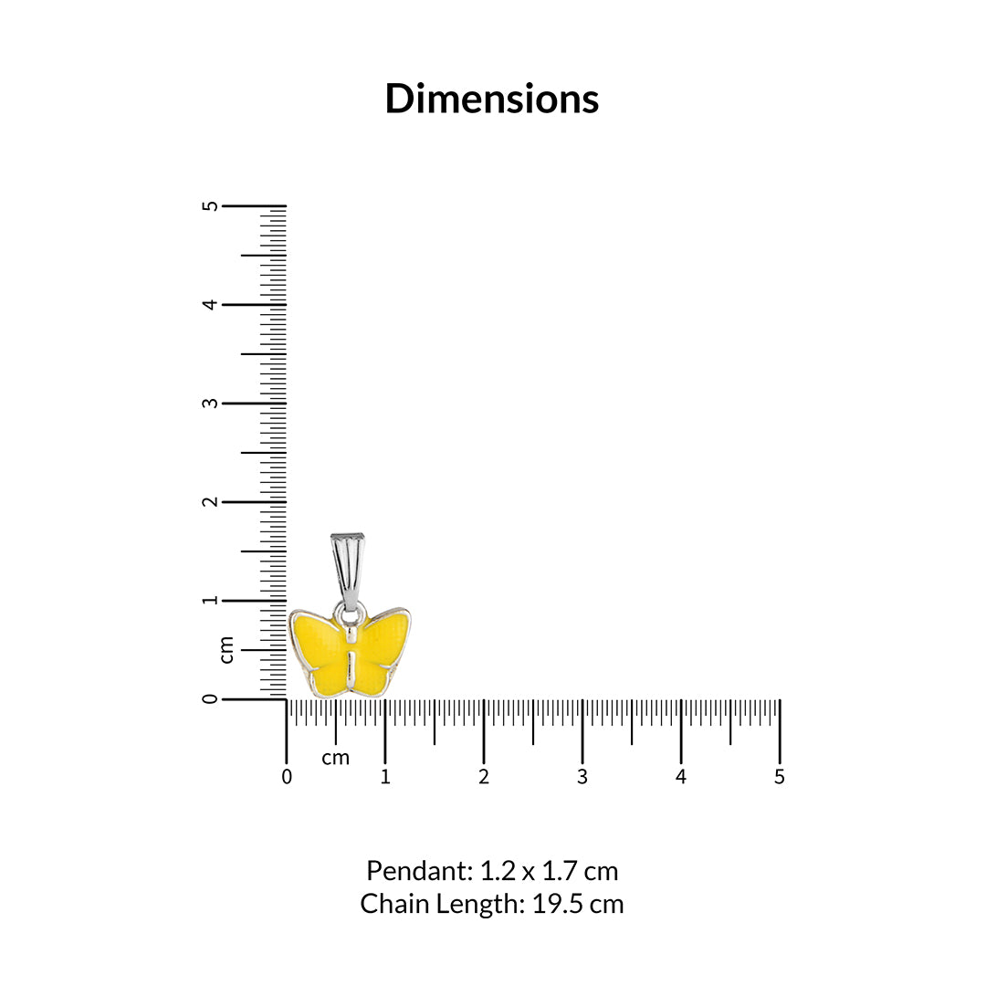 A super cute yellow butterfly pendant on a shiny silver chain, perfect for adding a fun splash of color! This lightweight necklace is great for everyday wear and makes a lovely gift.