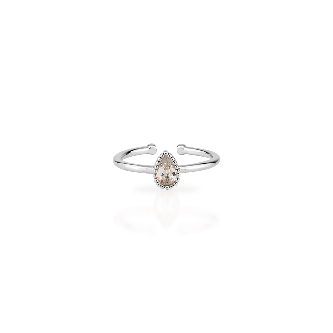 Delicate Sterling Silver Adjustable Open Ring with Pear-Cut Cubic Zirconia