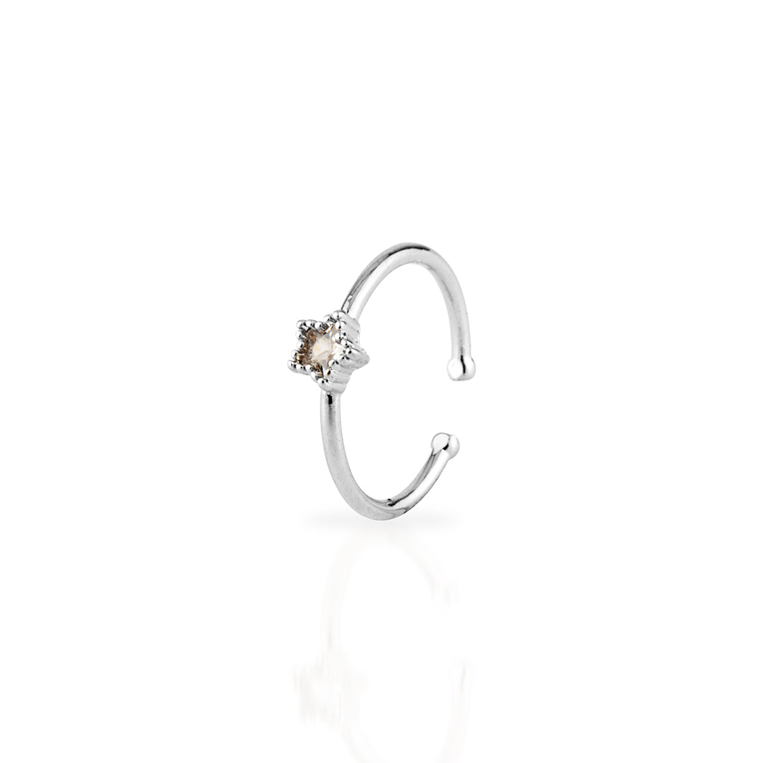 Delicate Sterling Silver Adjustable Open Ring with Star-Set Cubic Zirconia