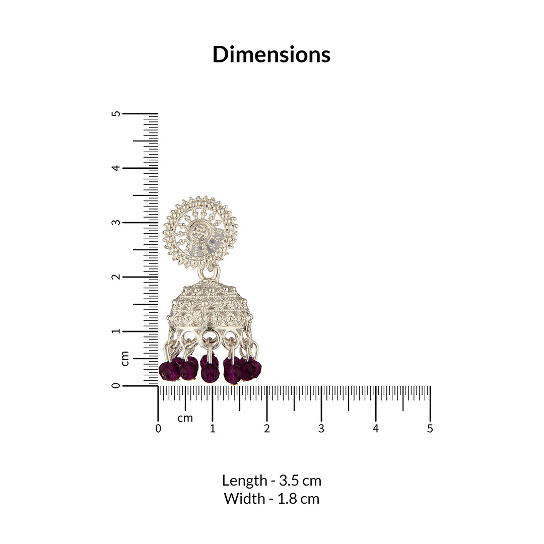 Oxidized Silver Intricate Jhumka Earrings with Purple Crystal Beads