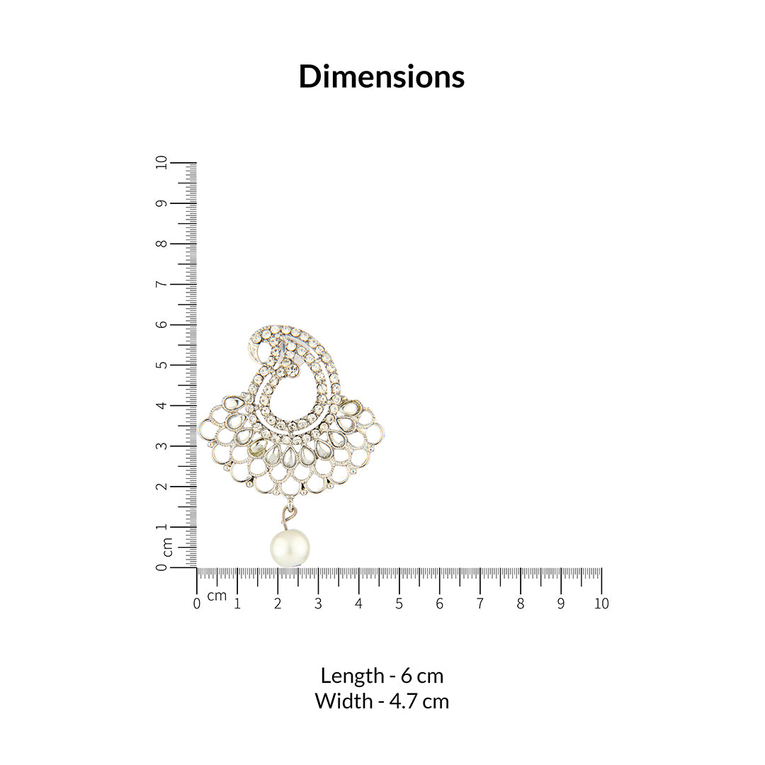 Adorn your ears with these elegant oxidized silver drop earrings, featuring a unique paisley or mango-shaped design. The intricate pattern is beautifully outlined and filled with sparkling clear stones, creating a dazzling effect. A single, lustrous white pearl gracefully dangles from the bottom, adding a touch of classic sophistication and charming movement. These versatile earrings are perfect for adding a touch of glamour to both traditional and contemporary outfits, making them ideal for festive occasions or everyday elegance.