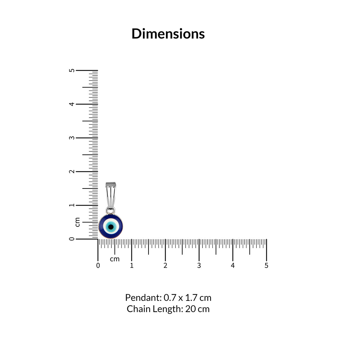Ward off negative energy and embrace positive vibes with our elegant Silver Chain with Blue Evil Eye Pendant Necklace. This charming necklace features a delicate silver-tone chain showcasing a captivating evil eye charm. The evil eye, a timeless symbol of protection, is beautifully rendered in vibrant shades of blue and white enamel, with a striking black pupil at its center. Lightweight and comfortable for everyday wear, this necklace is perfect for adding a touch of mystique and protection to any outfit. It makes a thoughtful gift for loved ones or a meaningful addition to your own jewelry collection.