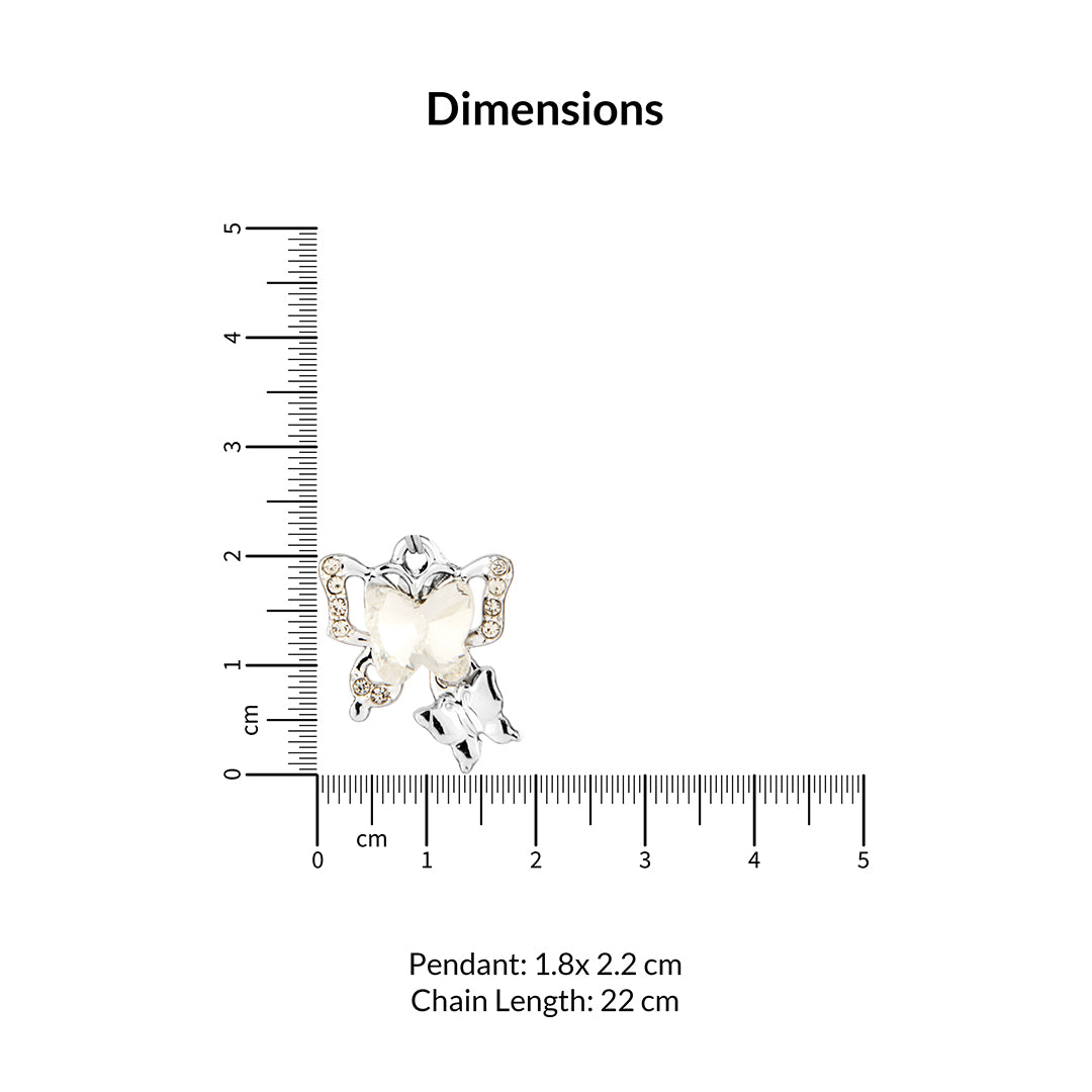 Embrace delicate beauty with this charming sterling silver necklace featuring two graceful butterflies. The larger butterfly's wings are elegantly adorned with shimmering champagne-toned crystals, adding a subtle sparkle. A smaller, polished silver butterfly dangles playfully beneath, creating a delightful layering effect. Suspended from a dainty silver chain, this necklace symbolizes transformation, joy, and connection. It's a perfect accessory for adding a touch of whimsy and elegance to your everyday look, or a thoughtful gift for someone special.
