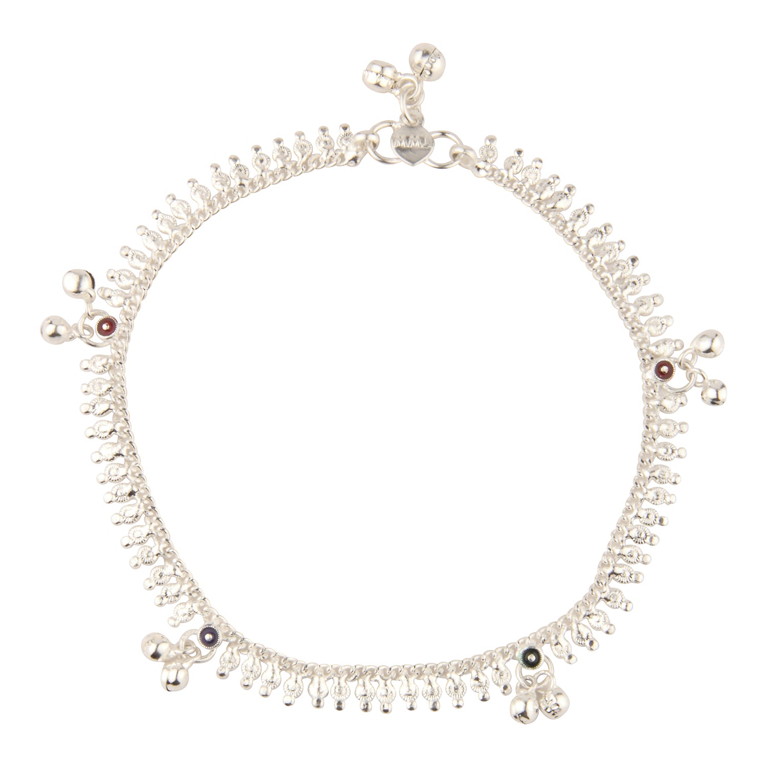 Traditional Ghungroo Anklet for Women | Artificial Payal with Colored Stones